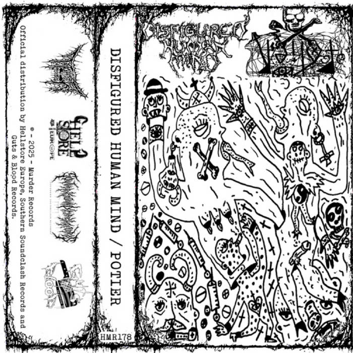 My necro-brother Danihell Slaughter sent me this tape quite a while ago. But thanks to the absurd grind of everyday life, I ended up pushing this review back way longer than I intended (and a few others too… I'm sorry Danihell, daily life is eating us alive…!). The new split tape by DISFIGURED HUMAN MIND and POTIER was released on July 31st, 2025 through Murder Records in collaboration with Southern Soundclash Records. DISFIGURED HUMAN MIND (Side Abnormal ''Nihilistic Noise Hanged In Agony With Misanthropic Minimalism'') contribute an exclusive noise session recorded specifically for this release, and it’s an immediate punch to the skull. The track moves on violently aggressive frequencies: walls of distortion, warped textures, unstable layers, and constant sonic convulsions. The chaotic structure and sharp transitions build a suffocating atmosphere that slowly tightens around you. Decay, filth, and a sickening heaviness hit the listener the moment the tape starts spinning. A deranged, punishing outburst, pure, unfiltered hell from the maniacs known as DISFIGURED HUMAN MIND. POTIER (Side Brutalized ''Hyper Cargo'') approaches the split from a different angle, but the destruction remains the same. Instead of unleashing raw noise at full blast, he constructs a ritualistic, subterranean environment: textures rising from a toxic soundscape, distorted drones slipping in like venom, and a dark minimalism that spreads slowly under the skin. Pulsing undercurrents and slow-burning drones create an atmosphere of corrosive, creeping tension, like pressure building at your temples, tightening little by little. The track doesn’t attack head-on, it encloses you, traps you, and lets the dread bloom in silence. A quieter kind of violence, far more suffocating. POTIER proves that chaos doesn’t need volume, sometimes it whispers until you can’t take it anymore. And don't forget to check out his social. POTIER (he is also the artist behind this sick & necro cover artwork!) is a unique presence with a strange, magnetic intensity. This split cassette is a limited edition to 50 copies only and it is forbidden for the unprepared. Sensitive listeners will regret the moment they press play on their tape deck. Don’t say you weren’t warned.... Extreme noise for extreme people... and no one else.